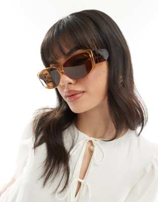 Pieces - Occhiali da sole con montatura trasparente e stanghette tartarugate spesse