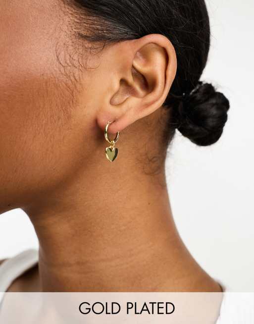 Pieces - Orecchini a cerchio placcati oro 18k con ciondolo a cuore