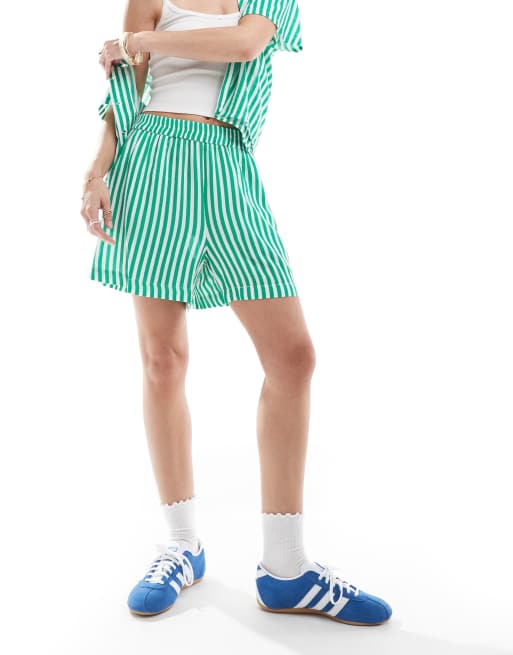 Pieces - Pantaloncini boyfriend verdi e bianchi a righe in coordinato