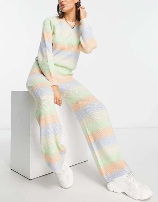 Pieces - Pantaloni a fondo ampio in maglia pastello sfumati in coordinato
