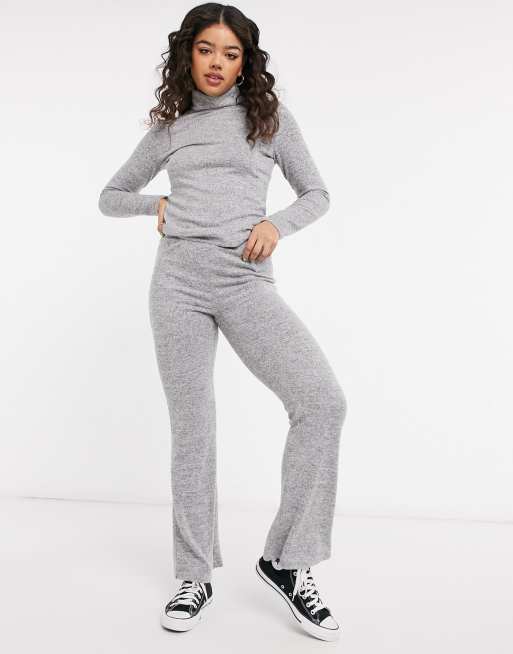 Pieces - Pantaloni a zampa in maglia grigi in coordinato