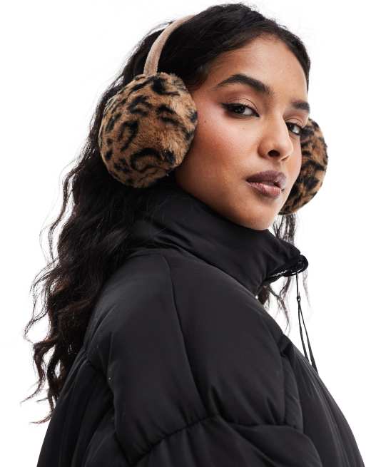 Pieces - Paraorecchie in pelliccia sintetica con stampa leopardata