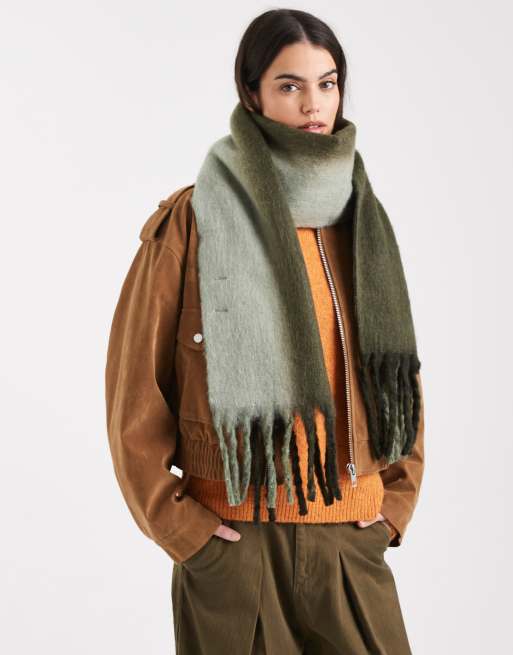 Pieces - Sciarpa morbidissima verde a righe con frange