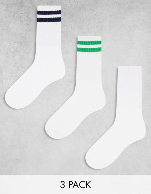 Pieces - Sport Core - Confezione da 3 paia di calzini bianchi e con righe verdi e blu navy