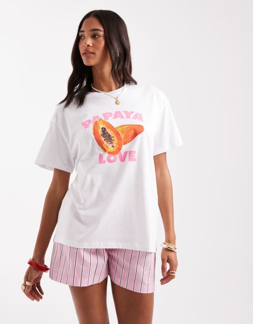 Pieces - T-shirt oversize bianca con grafica "Papaya Love"