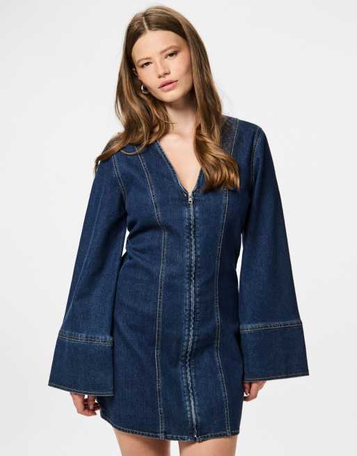 Pieces - Vestito in denim blu scuro