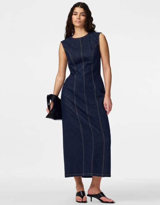 Pieces - Vestito midi in denim blu scuro