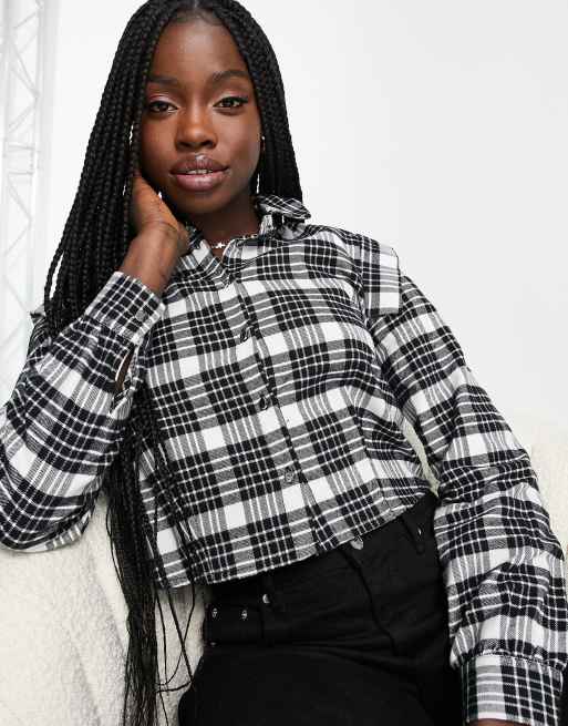 Pimkie - Camicia corta con volant sulle spalle bianca e nera a quadri
