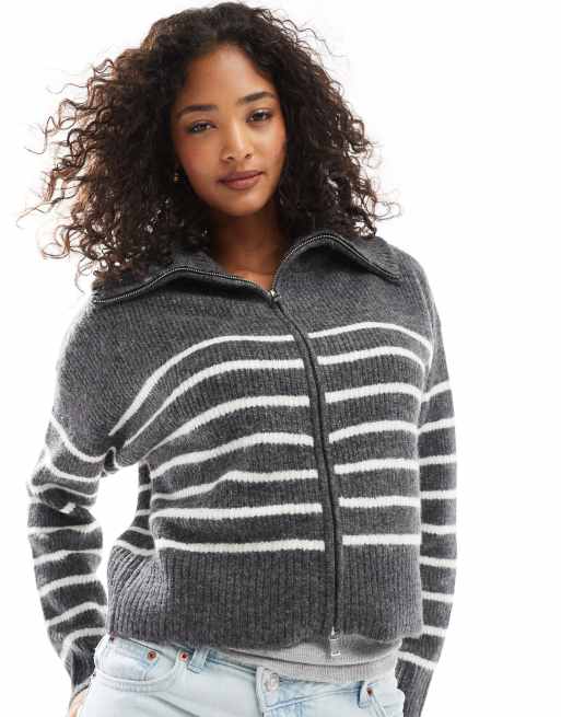 Pimkie - Cardigan con collo alto in lana grigio antracite a righe con zip