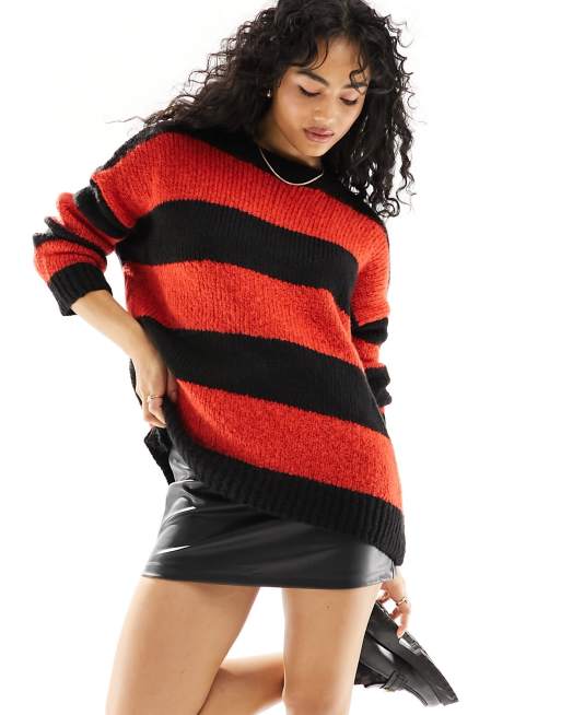 Pimkie - Maglione extra largo rosso e nero a righe