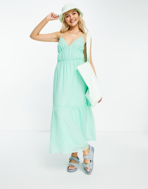 Pimkie - Vestito grembiule lungo verde con spalline sottili e scollo a V