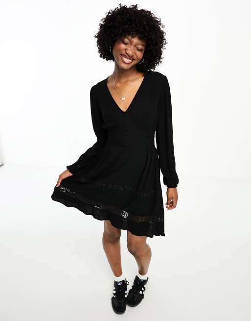 Pimkie - Vestito skater nero con scollo a V e inserto in pizzo