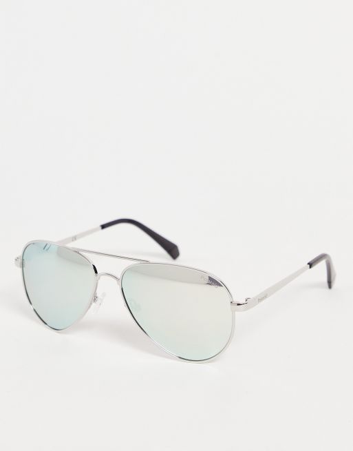 Polaroid - Occhiali da sole aviatore argento a specchio