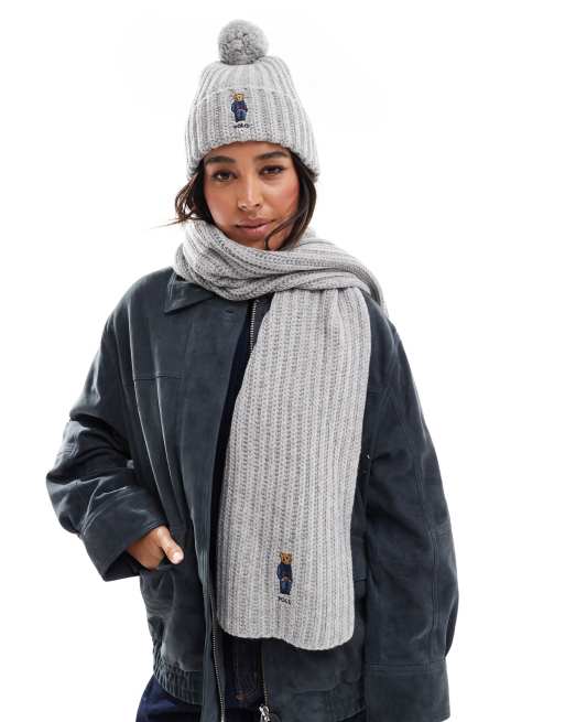 Polo Ralph Lauren - Berretto in maglia con pompon grigio con logo dell'orsetto
