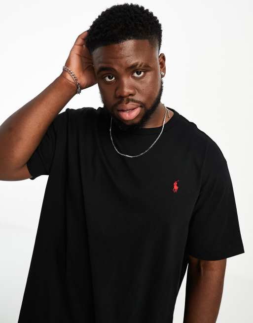 Polo Ralph Lauren Big & Tall - Icon - T-shirt pesante vestibilità classica oversize nera con logo