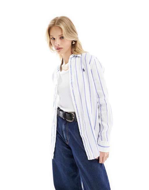 Polo Ralph Lauren - Camicia in lino bianca e blu a righe con logo