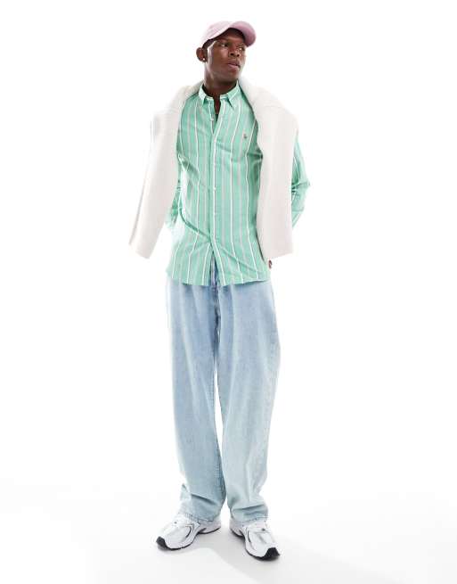 Polo Ralph Lauren - Camicia Oxford a righe verde e rosa con logo