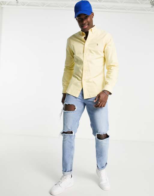 Polo Ralph Lauren - Camicia Oxford slim gialla con logo