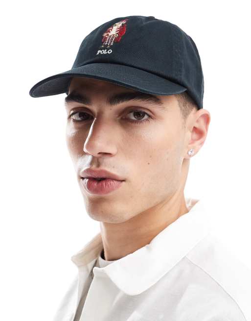 Polo Ralph Lauren - Cappellino da baseball nero in twill con logo natalizio ricamato a orsetto