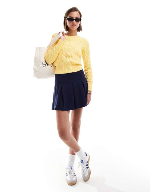 Polo Ralph Lauren - Cardigan giallo in maglia a trecce con logo