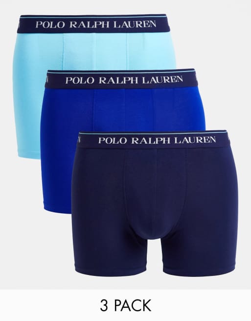 Polo Ralph Lauren - Confezione da 3 paia di boxer aderenti blu e blu navy con fascia in vita con logo