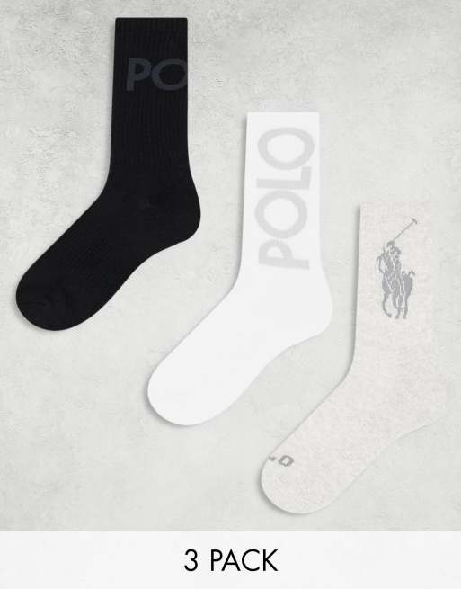 Polo Ralph Lauren - Confezione da 3 paia di calzini con logo color bianco, grigio e nero