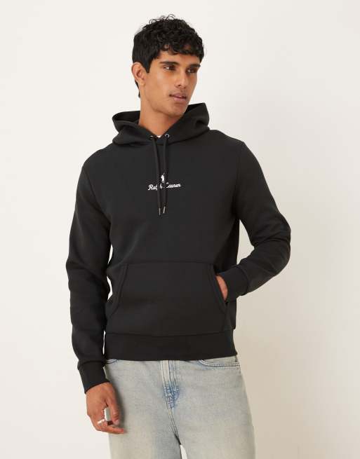 Polo Ralph Lauren - Felpa in maglia doppia con cappuccio e scritta del logo centrale nera