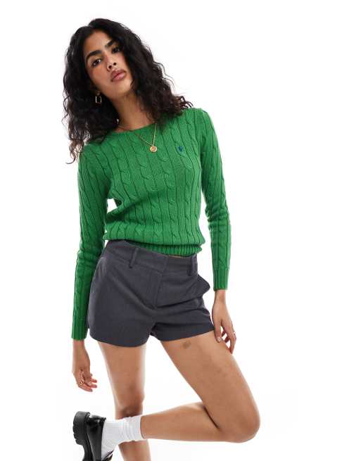 Polo Ralph Lauren - Maglione verde lavorato a trecce con logo