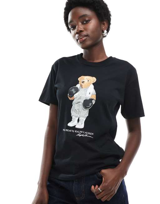 Polo Ralph Lauren - T-shirt nera con stampa di orsetto pugile