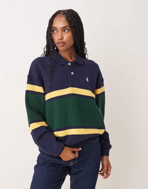 Polo Ralph Lauren - Top stile rugby in maglia blu navy a righe