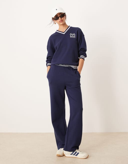 Polo Ralph Lauren Wimbledon Capsule - Coordinato con joggers dritti e felpa con scollo a V blu navy con profili a contrasto e logo