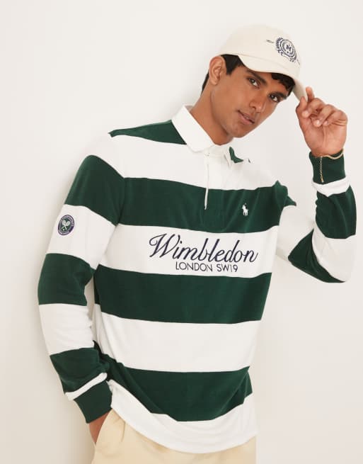 Polo Ralph Lauren - Wimbledon Capsule - Polo stile rugby verde scuro a righe con logo sul petto
