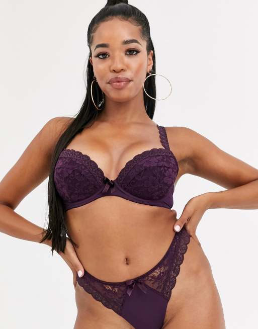 Pour Moi - Rebel - Reggiseno viola in pizzo coppe grandi imbottito con scollo profondo