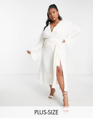 Pretty Lavish Curve - Vestito con gonna al polpaccio écru con drappeggio davanti e spacco