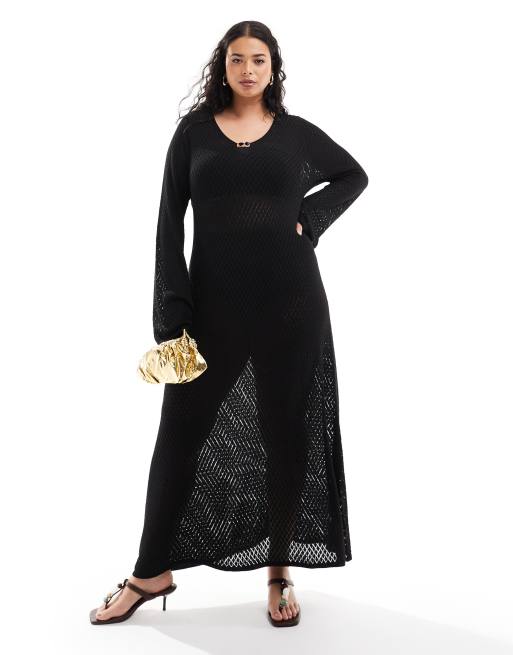 Pretty Lavish Curve - Vestito con gonna al polpaccio in maglia nera all'uncinetto