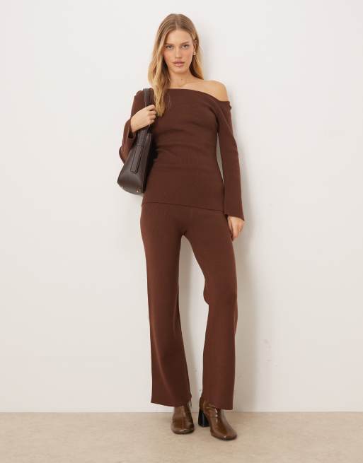 Pretty Lavish - Coordinato marrone con pantaloni e top in maglia con scollo dritto