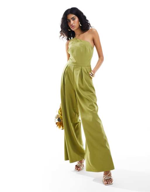 Pretty Lavish - Tuta jumpsuit monospalla oliva con tasche