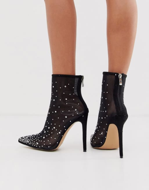 PrettyLittleThing - Stivaletti a punta neri con tacco e strass