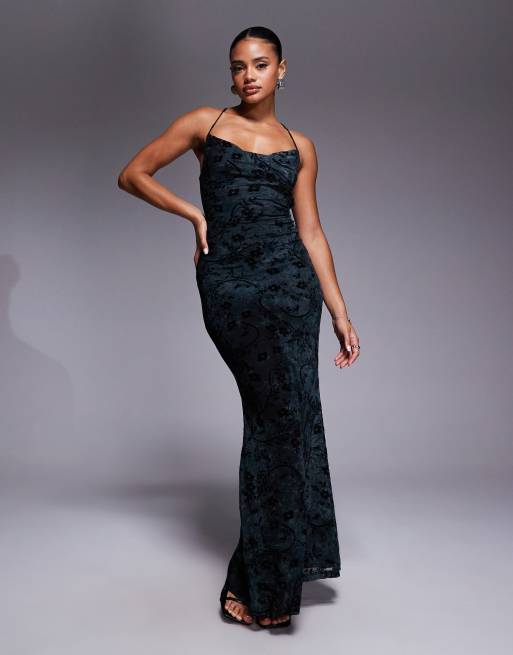 Princess Polly - Giorgiana - Vestito lungo con spalline sottili e scollo ad anello in rete verde e nero a fiori