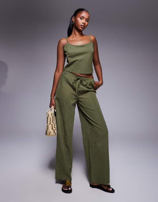 Princess Polly - Paigey - Completo kaki con canottiera e pantaloni a fondo ampio con coulisse