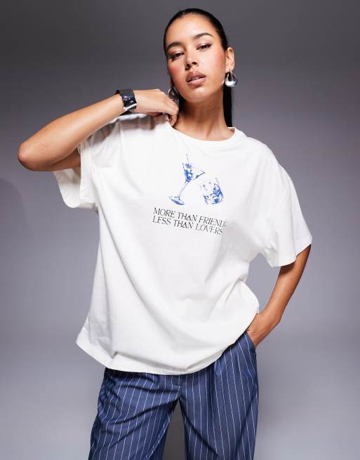 Princess Polly - T-shirt oversize bianca con stampa di cocktail e scritta “More Than Friends”