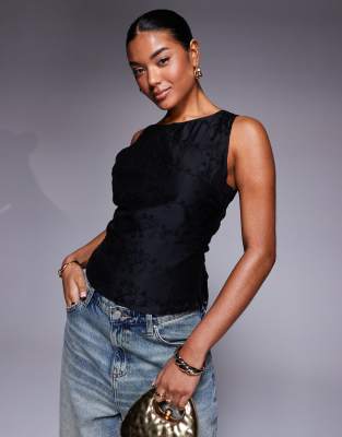 Princess Polly - Top senza maniche in pizzo nero con stampa a fiori