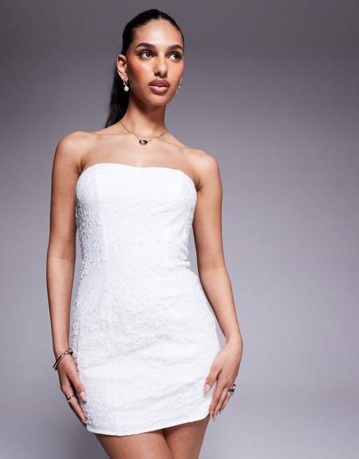 Princess Polly - Vestito corto a fascia strutturato bianco con ricamo