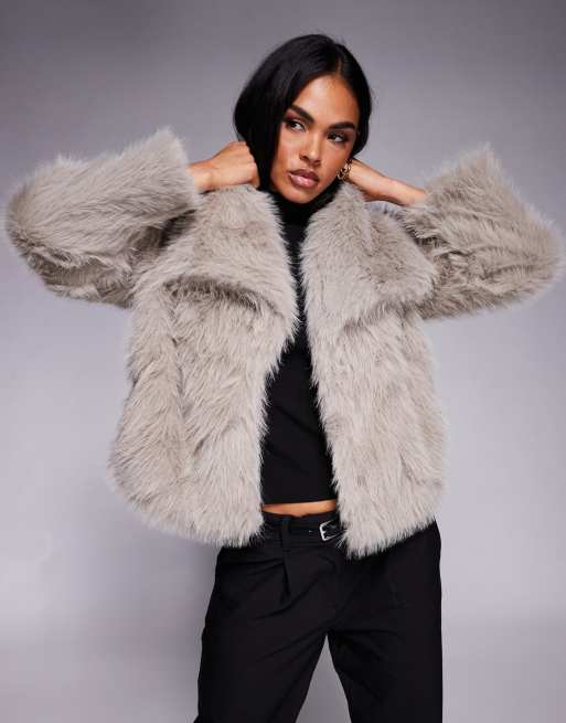Princess Polly - Wayland - Cappotto in pelliccia sintetica grigio caldo con maniche ampie e colletto oversize