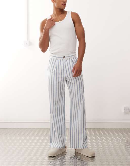 Prohibited - Pantaloni in lino a righe blu