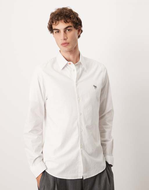 Paul Smith - Camicia sartoriale a maniche lunghe con logo a zebra bianca