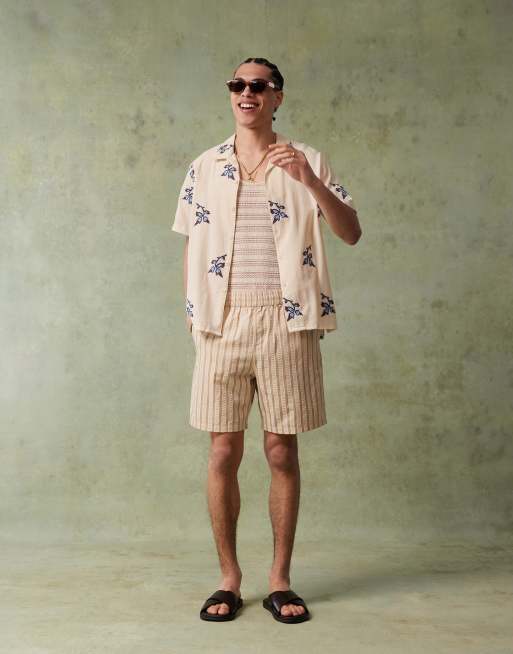 PS Paul Smith - Camicia a maniche corte bianco sporco con fiori ricamati