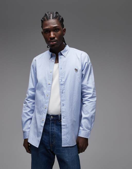 PS Paul Smith - Camicia a maniche lunghe sartoriale in lino blu