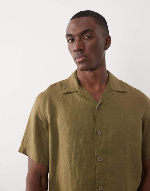 PS Paul Smith - Camicia casual a maniche corte in lino kaki