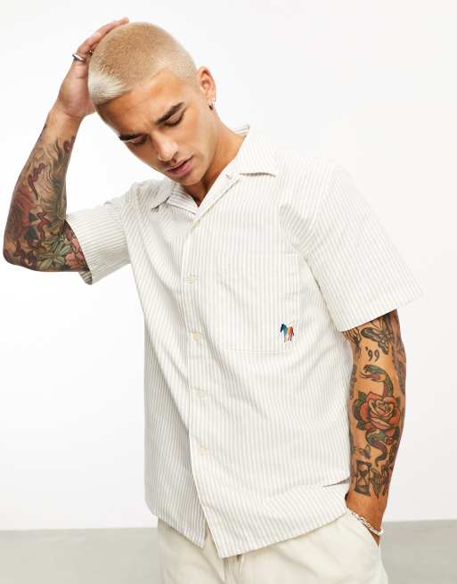 PS Paul Smith - Camicia comoda a righe bianca e beige chiaro